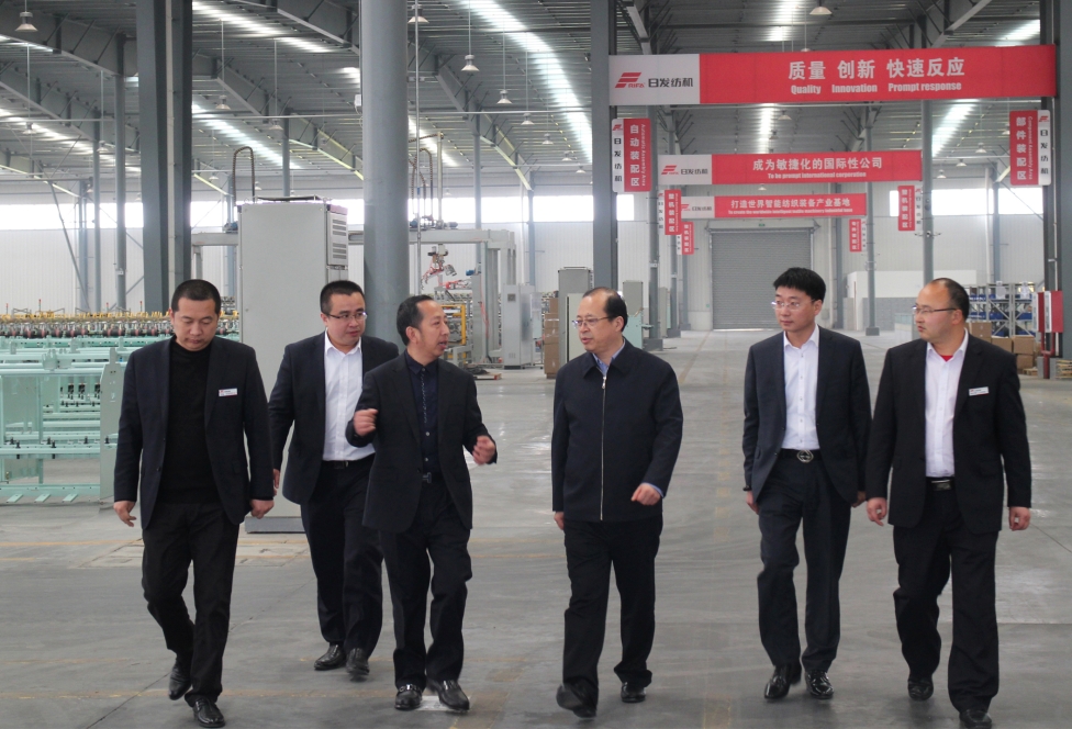 3月29日,新疆自治区副秘书长梁勇一行莅临我司参观调研,日发纺机董事长何旭平、山东日发纺机总经理李子军、安徽日发纺机总经理姚军辉等接待来访。