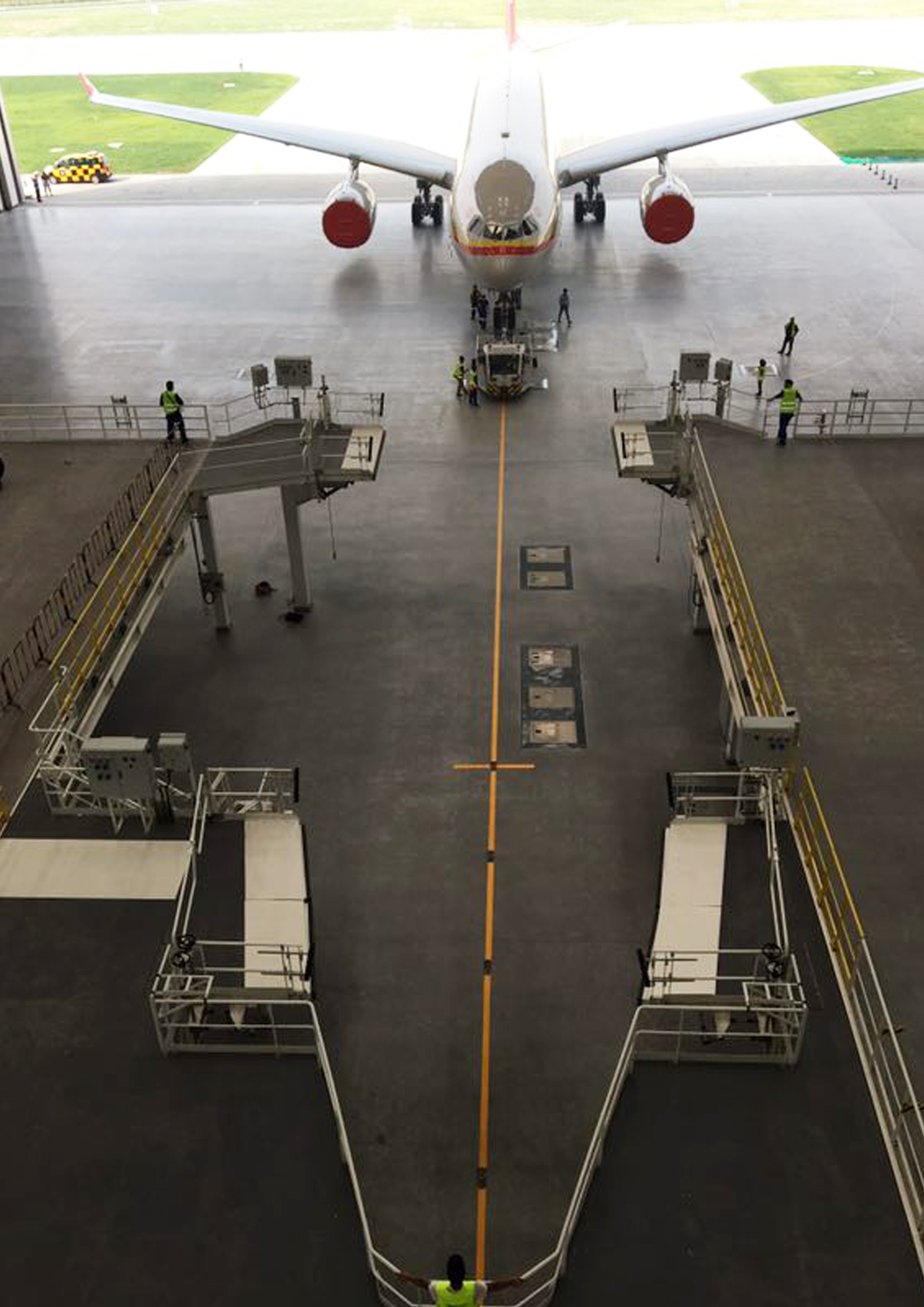 近日,在天津空客飞机装配现场,由日发航空负责研发制造的装配操作平台迎来了首架空客A330的进厂,这是我司继成功交付贵飞、陕飞、成飞军机项目,并获得成飞新机型总装脉动生产线系统集成装配项目后,首次参与的重大国际合作项目,标志着日发航空正式敲开了民航领域的大门,对今后进一步在航空航天领域的发展起到了重大战略作用。这也是自2016 年11月日发航空与中航国际航空发展有限公司签署《战略合作框架协议》以来,双方在航空领域地面支持设备方面紧密合作的重要成果。